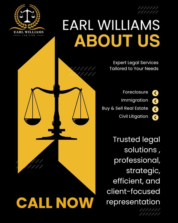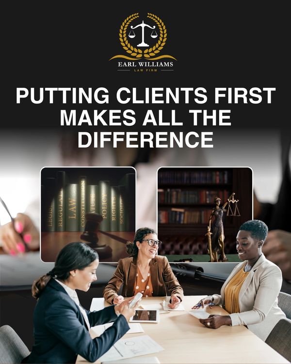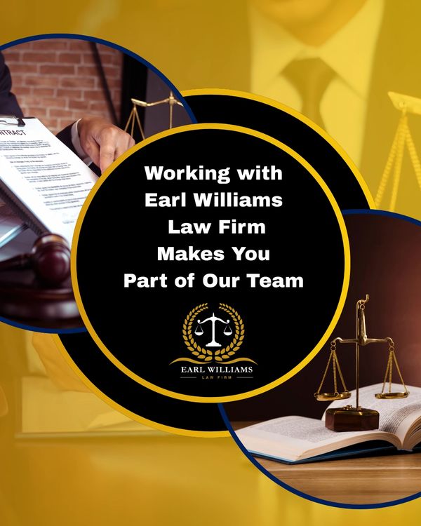 Earl Williams Law Firm is more than a law firm. We are a group of passionate and dedicated professionals who take pride in being there when it matters the most for our diverse clientele of individuals, families, and businesses We are adept at resolving conflicts outside of court, but we can aggressively pursue litigation on behalf of our clients when necessary. Additionally, we bring decades of experience to every case, which allows us to devise cost-effective solutions to complex problems and guide clients through challenging legal processes.